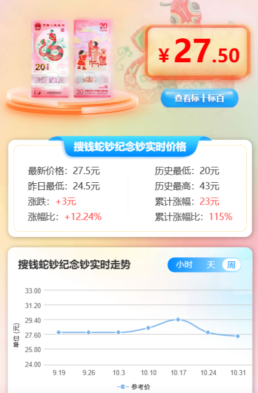 搜钱网是北京搜钱网络技术有限公司研发,致力于为钱币收藏爱好者打造了一个安全、便捷、专业的交流交易空间。用户可以通过微信小程序使用“搜钱”小程序 ,可向用户提供钱币藏品免费发布,智能估价、藏品人工在线鉴定、钱币百科,龙钞蛇钞配号等服务,通过技术与文化的深度融合,搜钱小程序以数据驱动、安全透明、用户共创为核心,重新定义生肖纪念钞的收藏与交易体验,助力每一位用户实现藏品价值的最大化释放。现注册用户超520万。