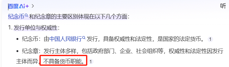 纪念章是不具备货币职能的!