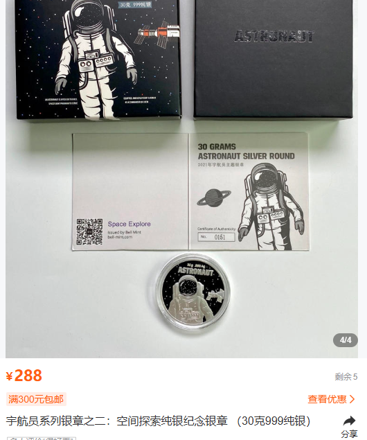某企业2023年推出的“航天纪念银章”,售价288元,实际原料价值没有这么高。