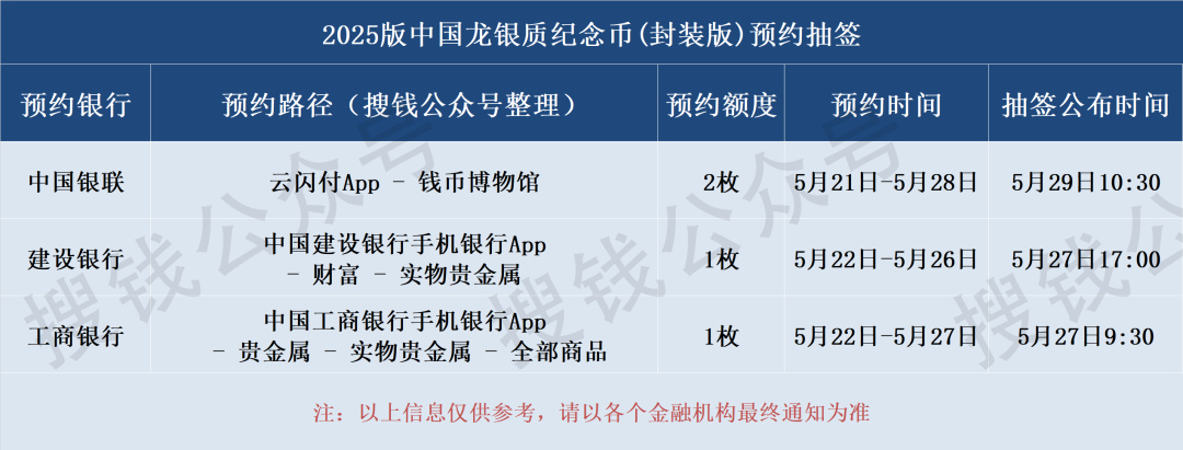 工商银行、建设银行:各可预约 1 枚,预约通道持续开放,支持多平台重复预约,互不冲突。