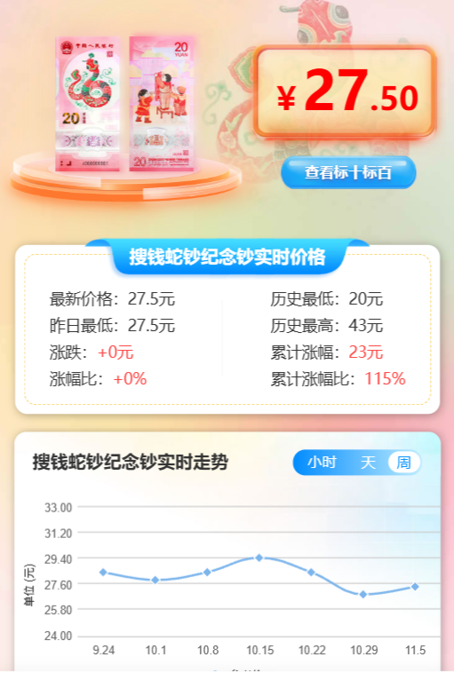 搜钱网是北京搜钱网络技术有限公司研发,致力于为钱币收藏爱好者打造了一个安全、便捷、专业的交流交易空间。用户可以通过微信小程序使用“搜钱”小程序 ,可向用户提供钱币藏品免费发布,智能估价、藏品人工在线鉴定、钱币百科,龙钞蛇钞配号等服务,通过技术与文化的深度融合,搜钱小程序以数据驱动、安全透明、用户共创为核心,重新定义生肖纪念钞的收藏与交易体验,助力每一位用户实现藏品价值的最大化释放。现注册用户超520万。