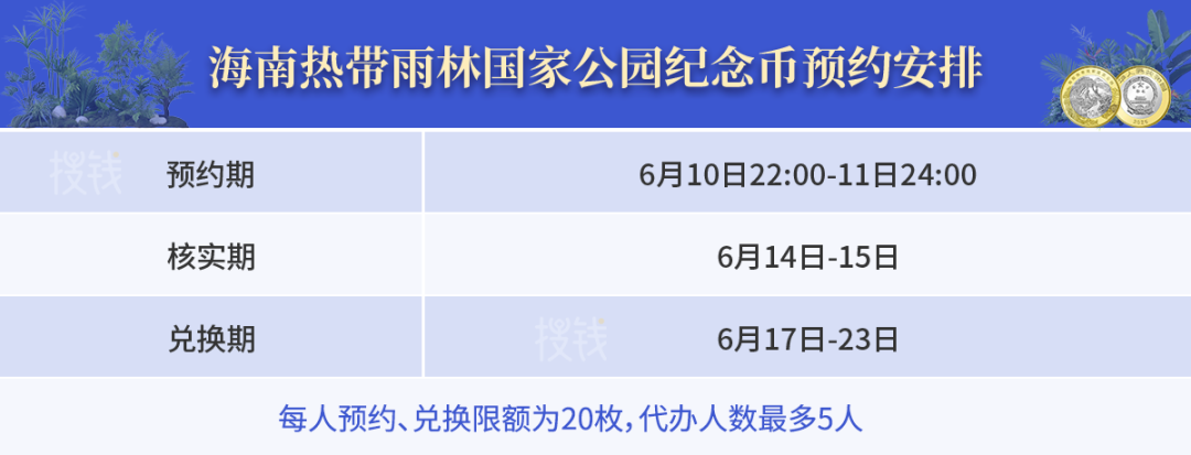 注意啦! 面值 10 元的海南热带雨林国家公园双色铜合金纪念币(以下简称“热带雨林币”)明日22:00即将开启线上预约,预约入口,各大银行网点额度都给大家整理好了!!