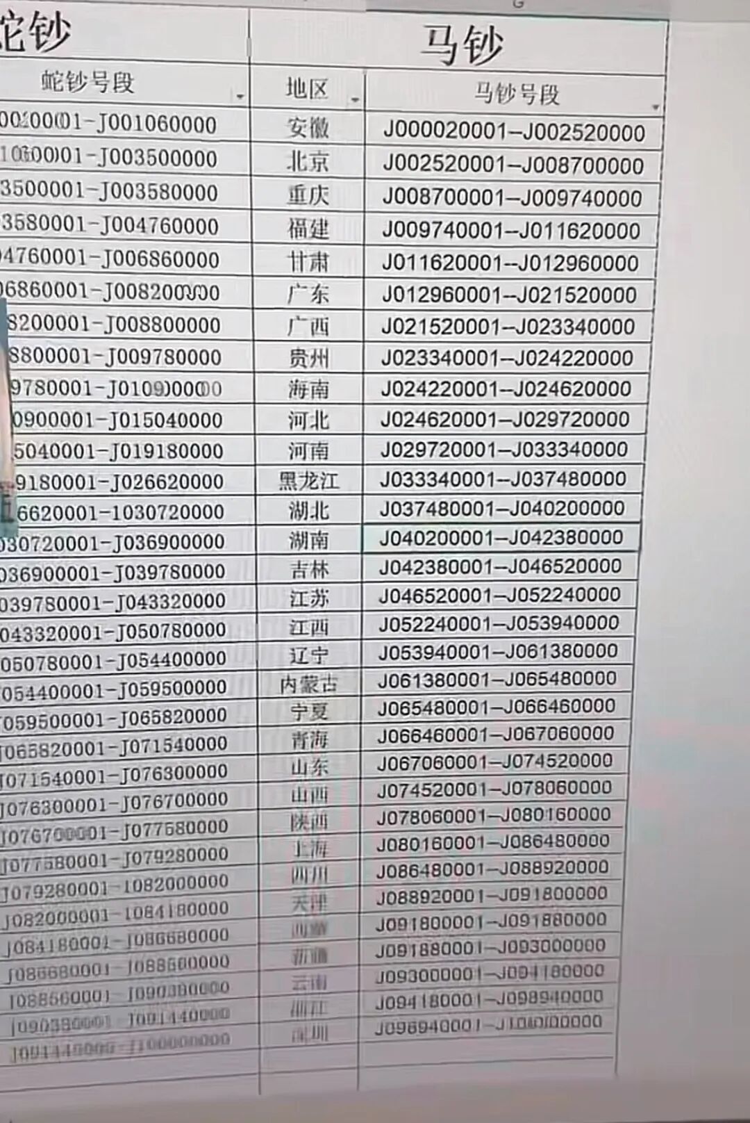 一般只有等马钞兑换到手后,才能真正知道并统计各个地区的号段。