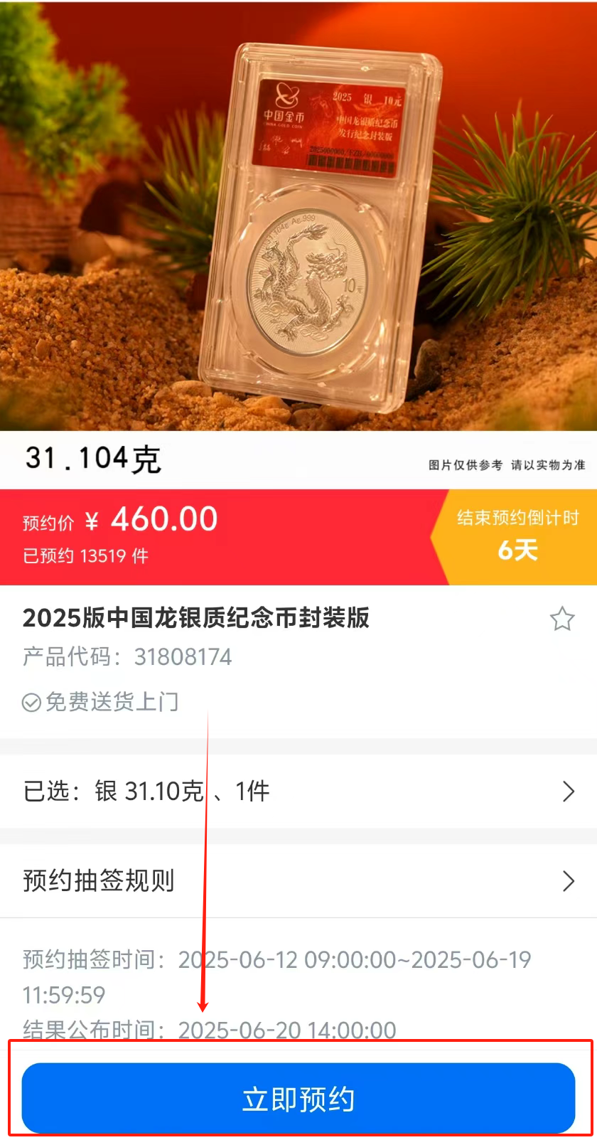 这次数量太少,抽不到也别灰心,好消息是,最快 6 月中下旬,会有一大批中国龙币裸币开启线上预约!