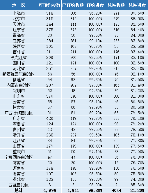 其中兑换进度最低的,依次是西藏、湖北、湖南、河南和海南等地。不少地区兑换进度低于80%。