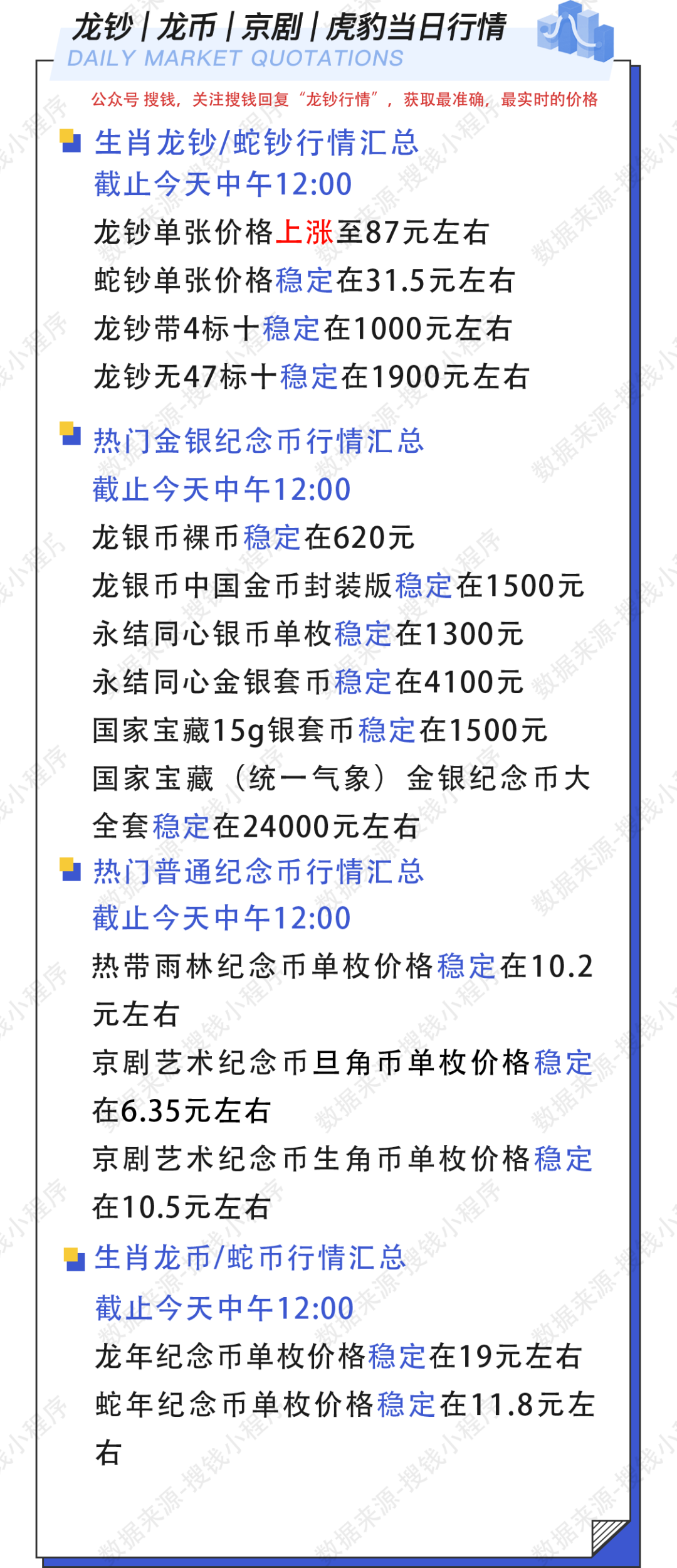 搜钱网是北京搜钱网络技术有限公司研发,致力于为钱币收藏爱好者打造了一个安全、便捷、专业的交流交易空间。用户可以通过微信小程序使用“搜钱”小程序 ,可向用户提供钱币藏品免费发布,智能估价、藏品人工在线鉴定、钱币百科,龙钞蛇钞配号等服务,通过技术与文化的深度融合,搜钱小程序以数据驱动、安全透明、用户共创为核心,重新定义生肖纪念钞的收藏与交易体验,助力每一位用户实现藏品价值的最大化释放。现注册用户超520万。