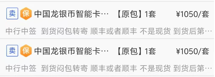 随着各大银行中签的中国龙卡币套装上市,其行情回落十分明显。之前价格还能到 1800 元,现在龙银币智能卡闷包的行情已经跌到了 1050 元。
