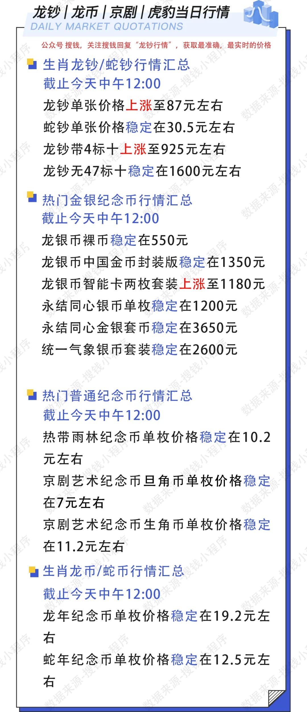 7月16日12:00龙银币/永结同心银币/龙钞/蛇钞实时行情价格,龙钞蛇钞今日行情!