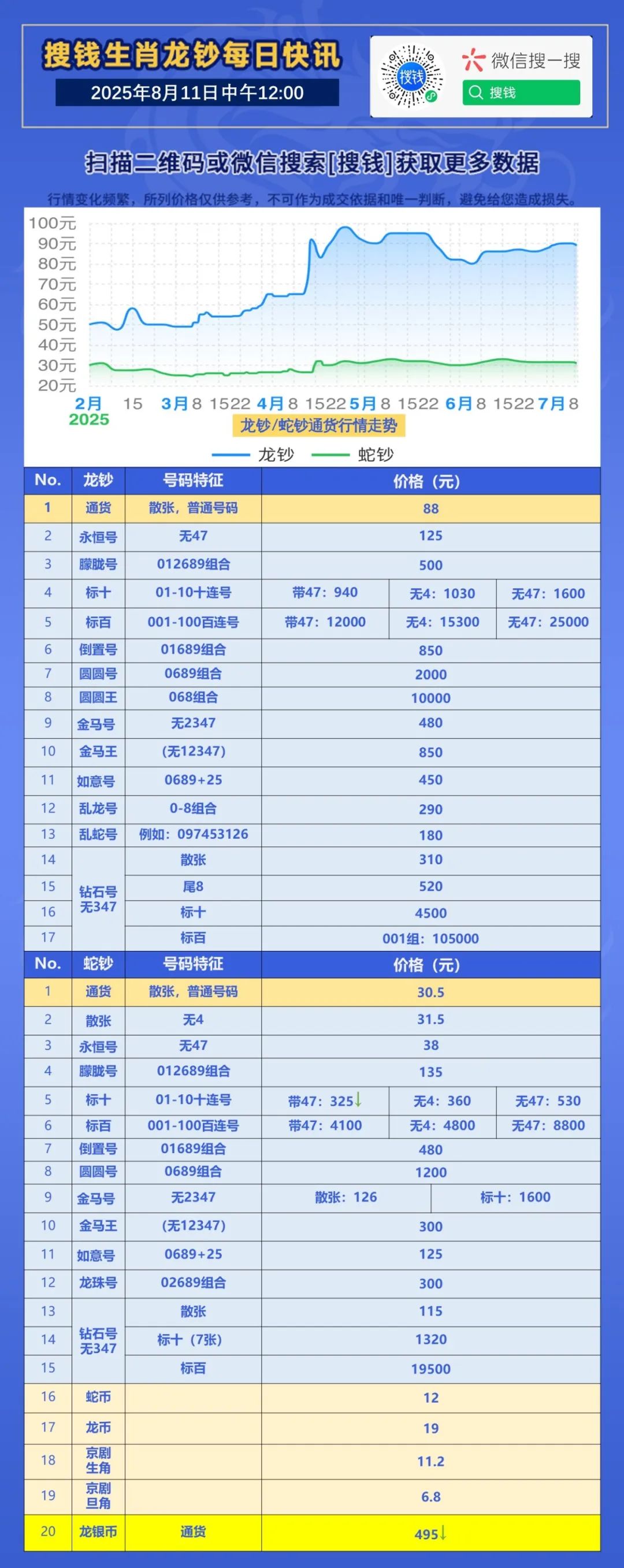 近期小龙钞价格企稳在88元左右,较4月高点(102元)有所回调,但较发行初期仍具韧性。从短期看,普通散张价格可能在80-90元区间震荡,特殊号码抗跌性强。从中长期来看,小龙钞作为生肖系列首张钞,文化价值和系列红利支撑其长期价值,且接近年底新的生肖钞发行时,配套需求可能增加。