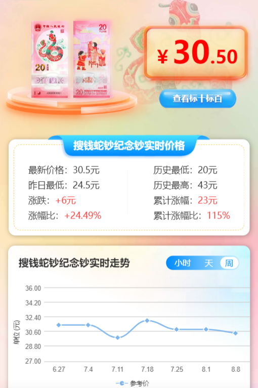 搜钱网是北京搜钱网络技术有限公司研发,致力于为钱币收藏爱好者打造了一个安全、便捷、专业的交流交易空间。用户可以通过微信小程序使用“搜钱”小程序 ,可向用户提供钱币藏品免费发布,智能估价、藏品人工在线鉴定、钱币百科,龙钞蛇钞配号等服务,通过技术与文化的深度融合,搜钱小程序以数据驱动、安全透明、用户共创为核心,重新定义生肖纪念钞的收藏与交易体验,助力每一位用户实现藏品价值的最大化释放。现注册用户超520万。