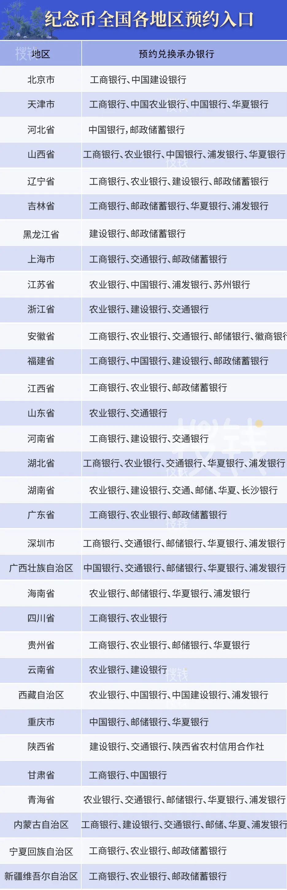 预约将通过各大银行线上渠道进行,为方便大家快速操作,小丸子已整理好各省预约银行对应表,可以提前参考: