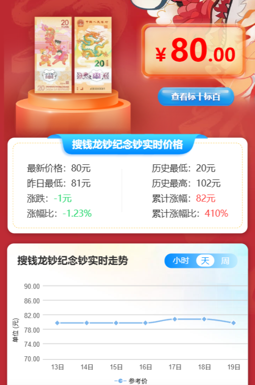 搜钱网是北京搜钱网络技术有限公司研发,致力于为钱币收藏爱好者打造了一个安全、便捷、专业的交流交易空间。用户可以通过微信小程序使用“搜钱”小程序 ,可向用户提供钱币藏品免费发布,智能估价、藏品人工在线鉴定、钱币百科,龙钞蛇钞配号等服务,通过技术与文化的深度融合,搜钱小程序以数据驱动、安全透明、用户共创为核心,重新定义生肖纪念钞的收藏与交易体验,助力每一位用户实现藏品价值的最大化释放。现注册用户超520万。