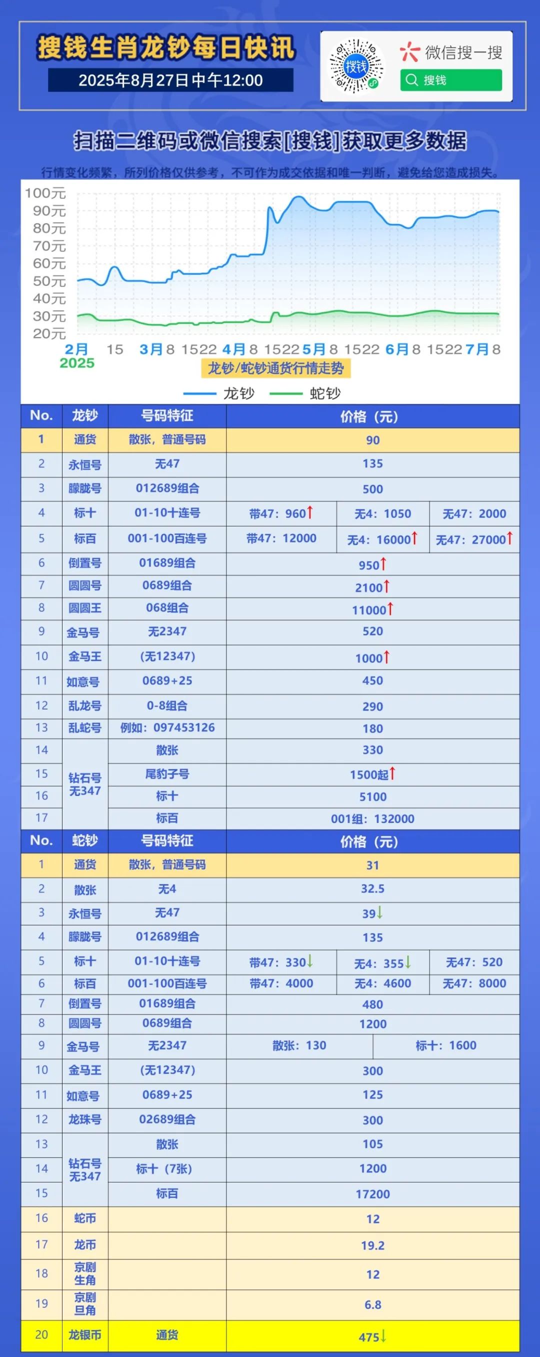 当前位置:首页 > 钱币视界 > 8月27日12:00龙钞/蛇钞/龙银币/大运河币实时行情价格