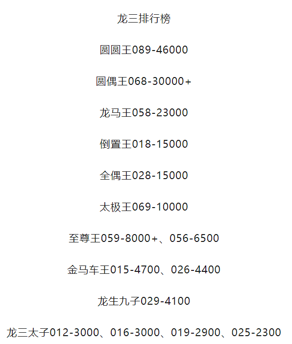龙钞圆圆王 068 后 089 大涨;龙三排行榜中,圆圆王 089 达 46000 元,偶王 068 超 30000 元,龙马王 05823000 元,其余如倒置王、全偶王等价格梯度显著。