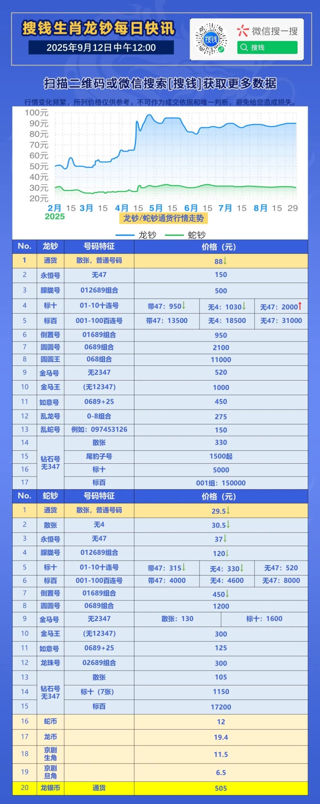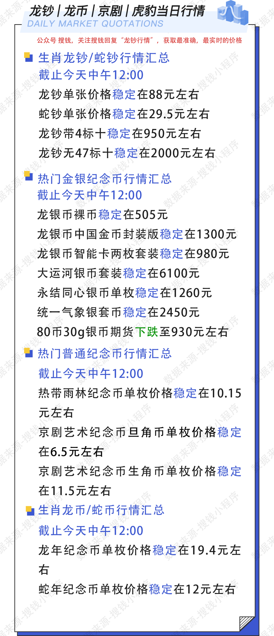 当前位置:首页 > 钱币视界 > 9月12日12:00龙钞/蛇钞/龙银币实时行情价格