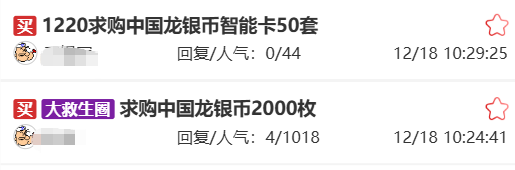 龙银币智能卡两枚套装上涨至1220 元左右