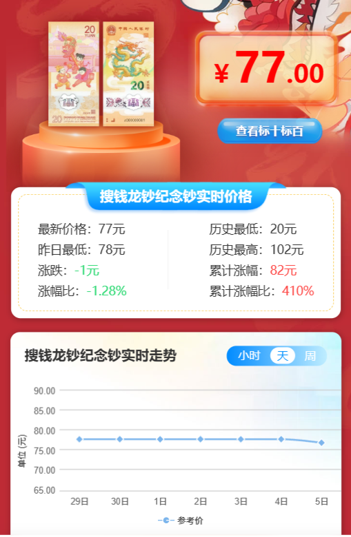 龙钞通货稳定在77元左右