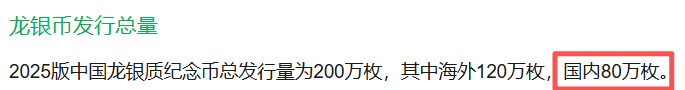 中国龙银币总发行量 200 万枚,传闻国内投放 80 万枚,