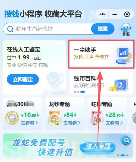 搜钱网是北京搜钱网络技术有限公司研发,致力于为钱币收藏爱好者打造了一个安全、便捷、专业的交流交易空间。用户可以通过微信小程序使用“搜钱”小程序 ,可向用户提供钱币藏品免费发布,智能估价、藏品人工在线鉴定、钱币百科,龙钞蛇钞配号等服务,通过技术与文化的深度融合,搜钱小程序以数据驱动、安全透明、用户共创为核心,重新定义生肖纪念钞的收藏与交易体验,助力每一位用户实现藏品价值的最大化释放。现注册用户超520万。
