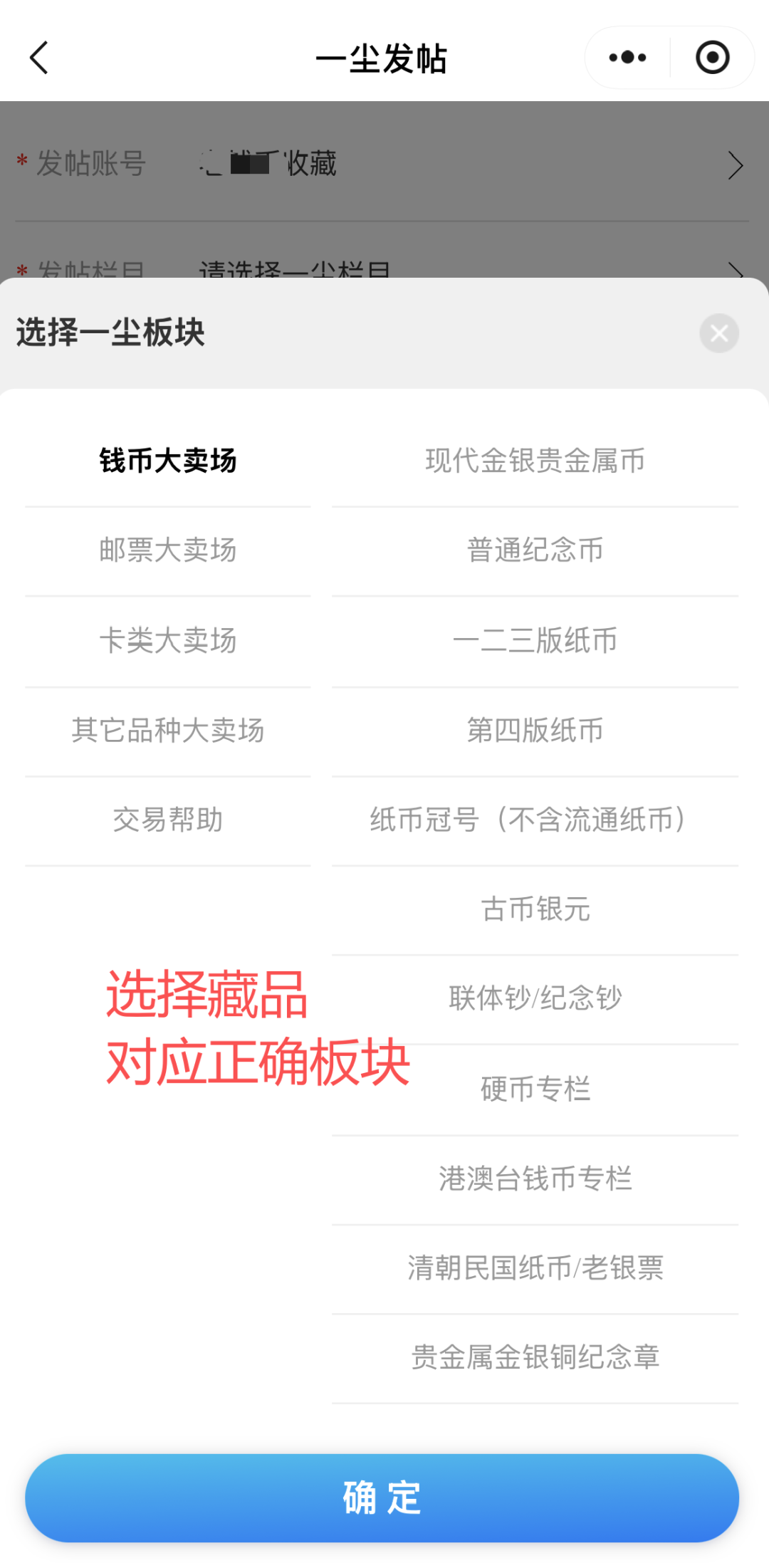 特别注意:一尘网版块选择可以上下滑动,请仔细选择藏品对应的正确版块,避免发错版块,发错版块可能导致帖子不被目标买家看到。