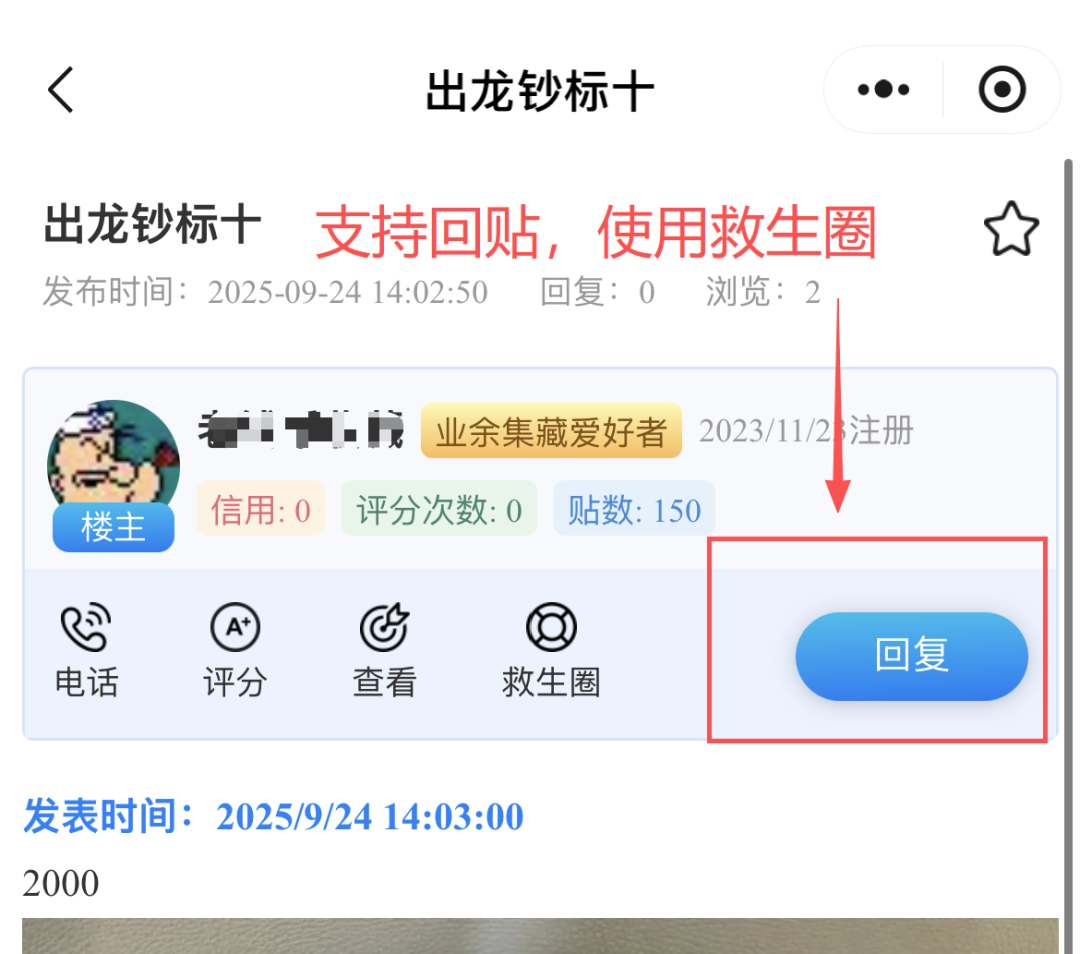 为提升交易效率,一尘助手有回帖功能。支持直接在原帖上回帖,如补充描述、调价、确认帖子等。还可以使用救生圈。