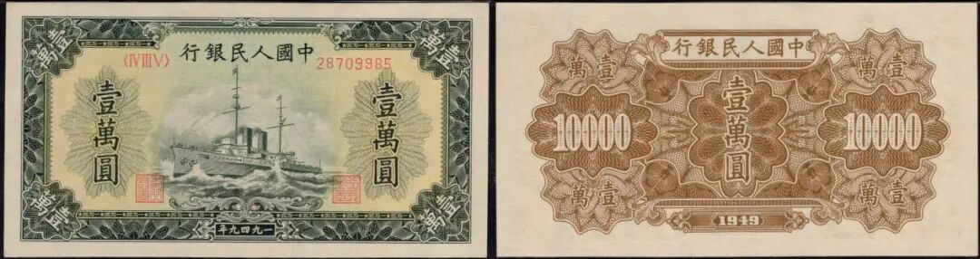 10000元军舰,角水印版,美评PMG64分,无背标,全新原票,票色鲜亮深厚,状态不错,在9月中旬的成交价为12584元。