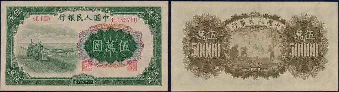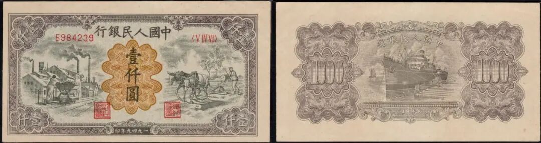 1000元运煤与耕田,美评PMG53EPQ,自然原票,中折不种,号码是较为少见的非5000号段,在9月中旬曾拍出13000元。