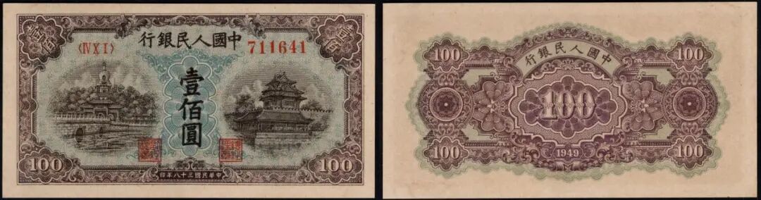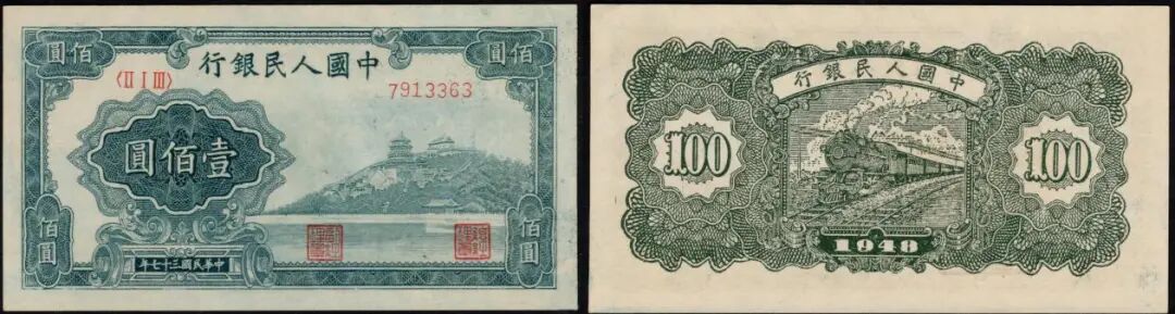 100元蓝北海星水印版,美评PMG64分,无背标,墨色极为浓郁,纸张纹理极佳,状态一流,在9月中旬的成交价为8424元。