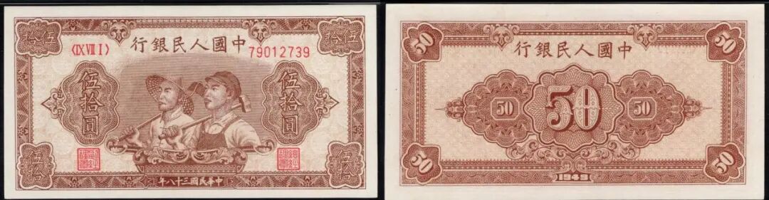 50元大工农,普通八位码,美评64分,不带背标,直板无折,在9月中旬群里曾拍出8736元。