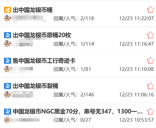 二轮生肖龙年纪念币稳定在18.8元左右