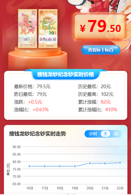 搜钱网是北京搜钱网络技术有限公司研发,致力于为钱币收藏爱好者打造了一个安全、便捷、专业的交流交易空间。用户可以通过微信小程序使用“搜钱”小程序 ,可向用户提供钱币藏品免费发布,智能估价、藏品人工在线鉴定、钱币百科,龙钞蛇钞配号等服务,通过技术与文化的深度融合,搜钱小程序以数据驱动、安全透明、用户共创为核心,重新定义生肖纪念钞的收藏与交易体验,助力每一位用户实现藏品价值的最大化释放。现注册用户超520万。