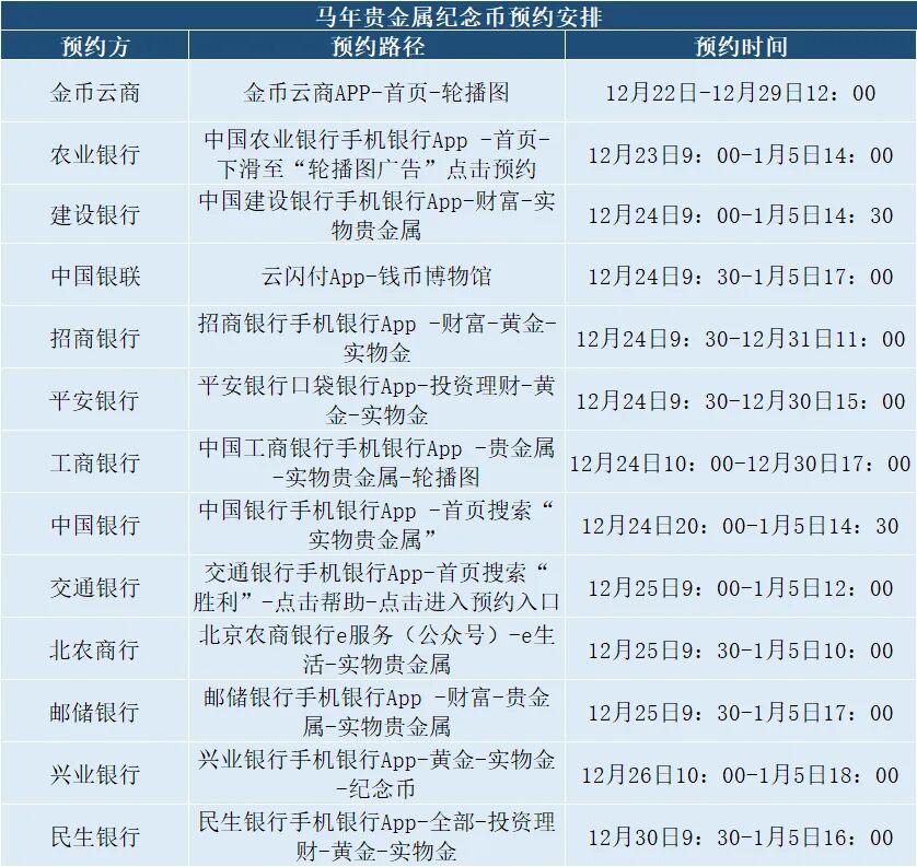 2026年贺岁纪念币预约安排正式公布,金币云商已率先启动预约,农行、建行、工行、中行等多家银行于12月24日9时起陆续开放线上预约通道,本次共设8大预约入口,方便藏友参与。