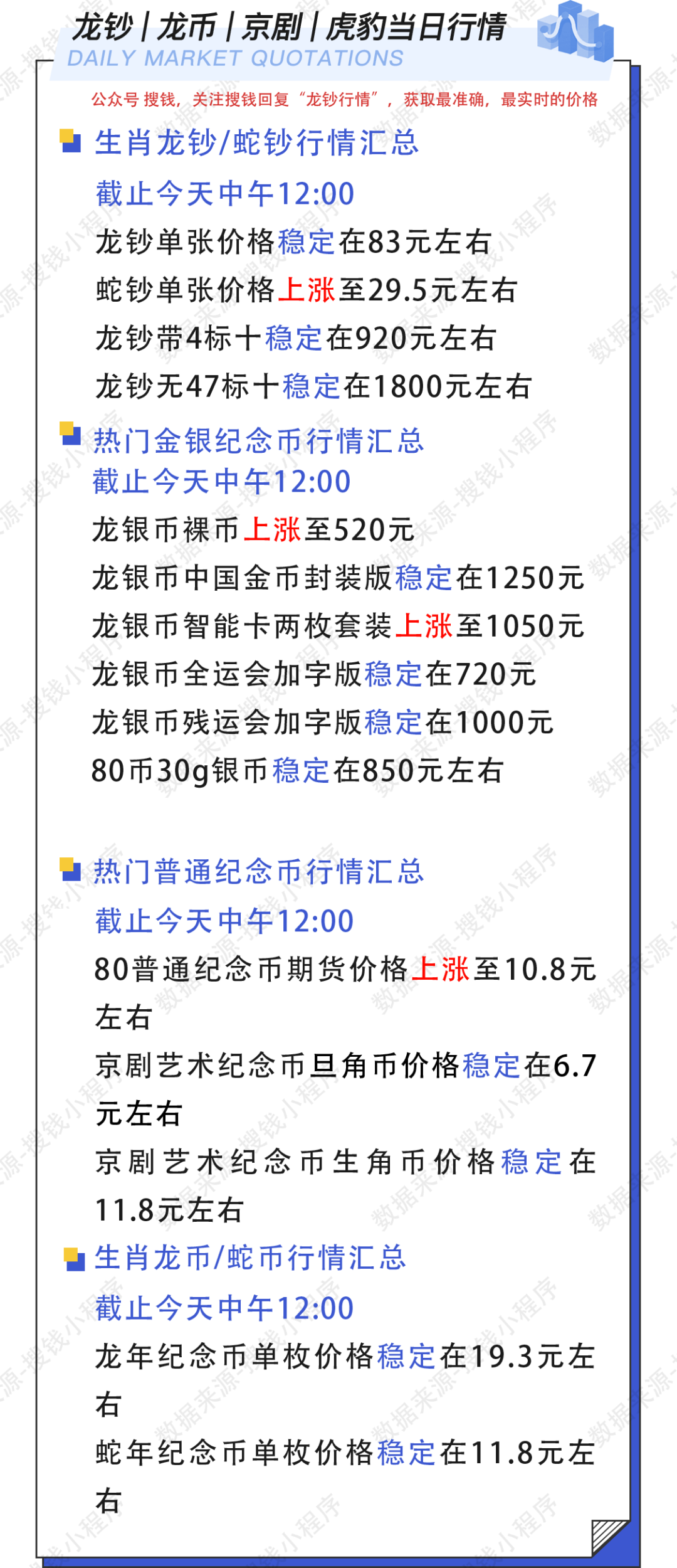当前位置:首页 > 钱币视界 > 10月13日12:00龙钞/蛇钞/龙银币实时行情价格