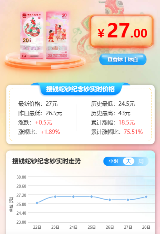 二轮生肖蛇年纪念币稳定在11.3元左右