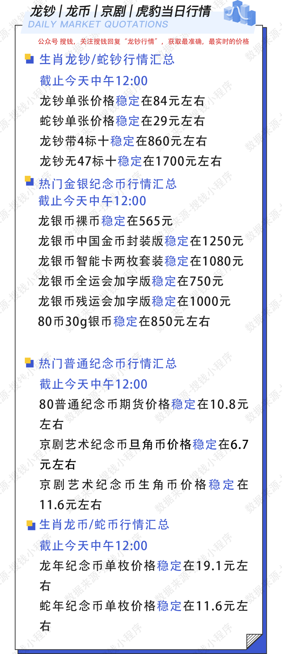 当前位置:首页 > 钱币视界 > 10月19日12:00龙钞/蛇钞/龙银币实时行情价格