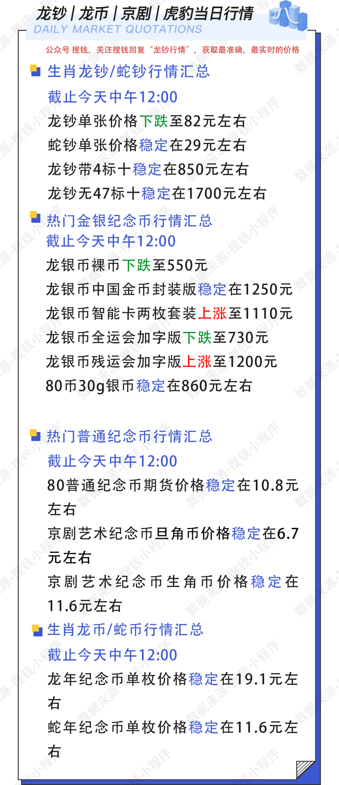 当前位置:首页 > 钱币视界 > 10月20日12:00龙钞/蛇钞/龙银币实时行情价格