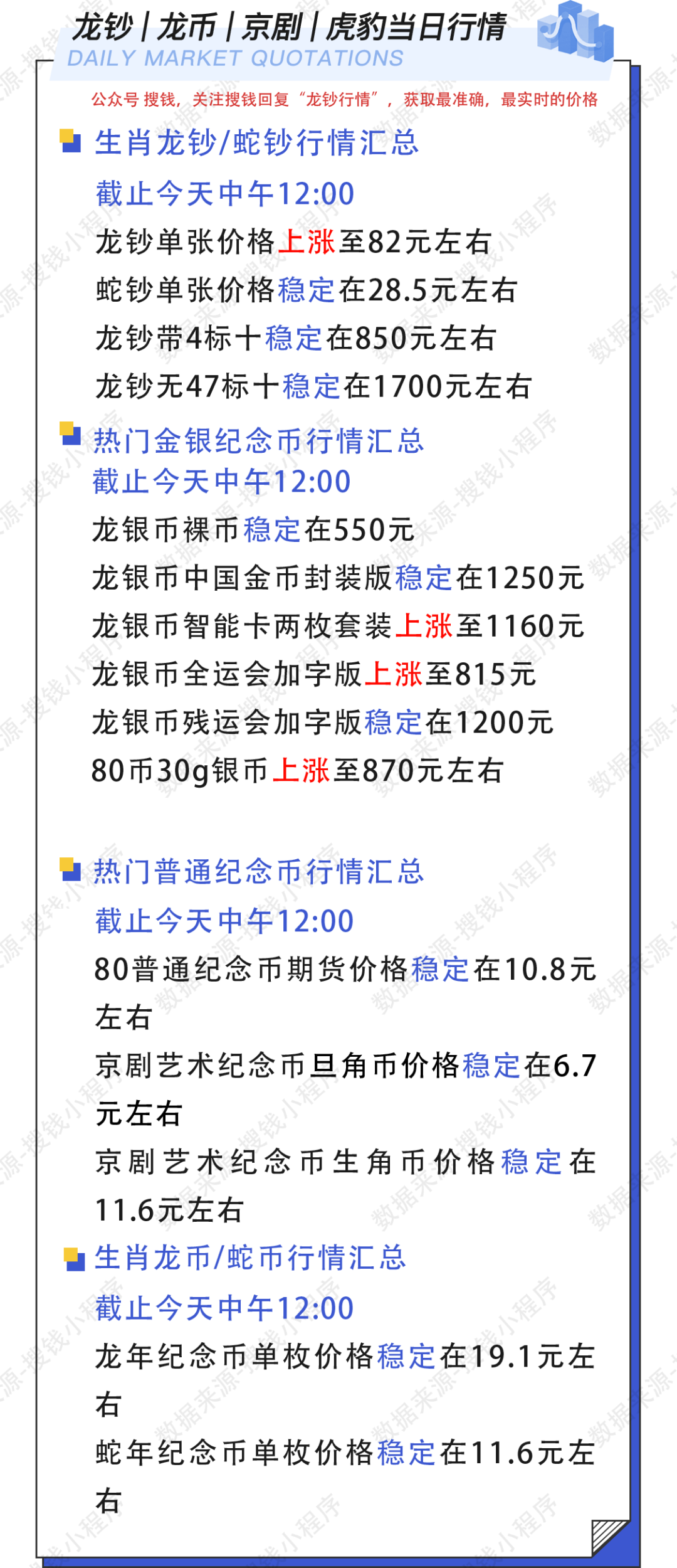 当前位置:首页 > 钱币视界 > 10月22日12:00龙钞/蛇钞/龙银币实时行情价格