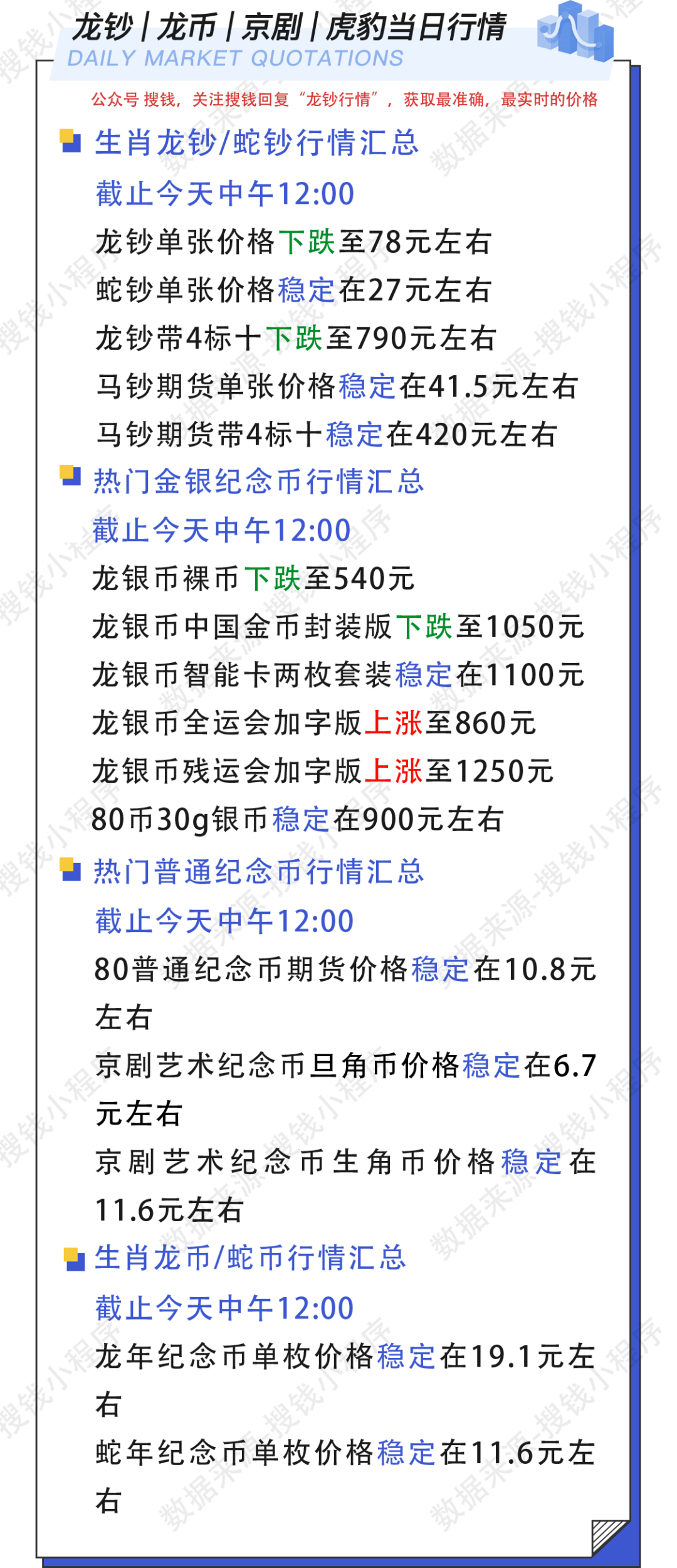 龙钞蛇钞通货价格持续走低,原本表现稳健的靓号品类也同步出现下跌。
