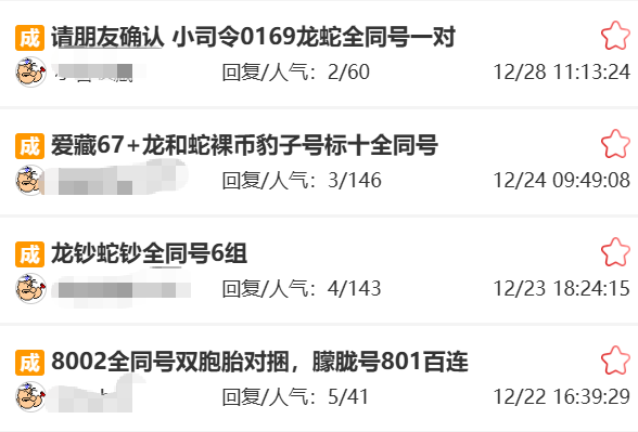 “龙蛇配号”全同号更是带来了惊人的溢价空间。