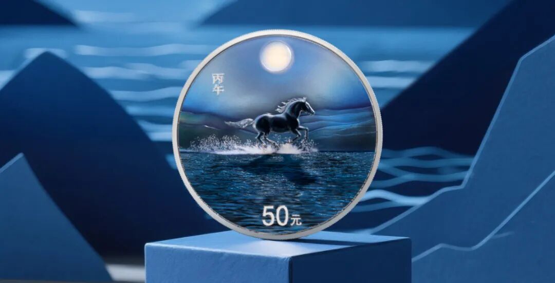 这次最受关注的,是150克彩银马纪念币。它的发行量只有8000枚,发行售价是3985元。