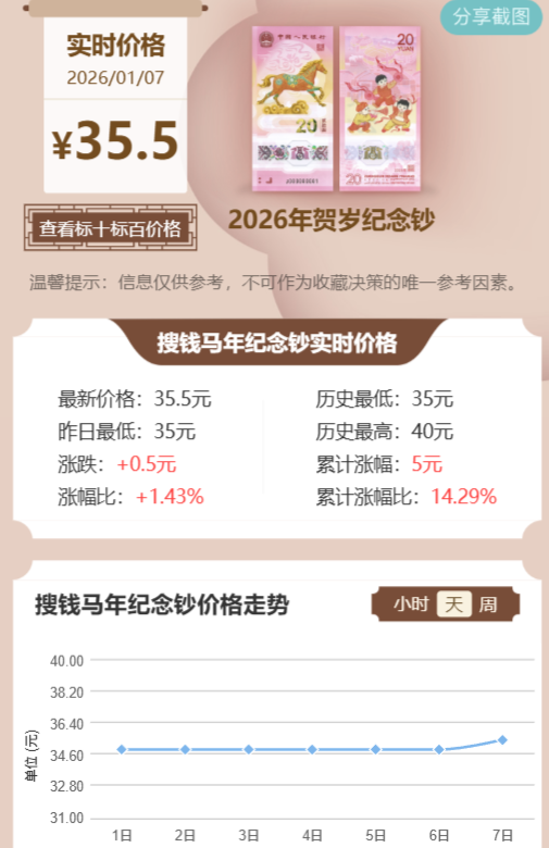 搜钱网是北京搜钱网络技术有限公司研发,致力于为钱币收藏爱好者打造了一个安全、便捷、专业的交流交易空间。用户可以通过微信小程序使用“搜钱”小程序 ,可向用户提供钱币藏品免费发布,智能估价、藏品人工在线鉴定、钱币百科,龙钞蛇钞配号等服务,通过技术与文化的深度融合,搜钱小程序以数据驱动、安全透明、用户共创为核心,重新定义生肖纪念钞的收藏与交易体验,助力每一位用户实现藏品价值的最大化释放。现注册用户超520万。