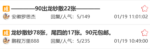 龙钞散张行情