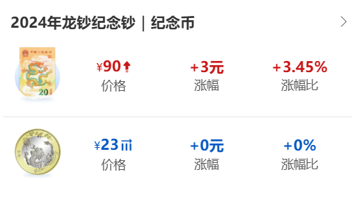 二轮生肖龙年纪念币稳定在23左右