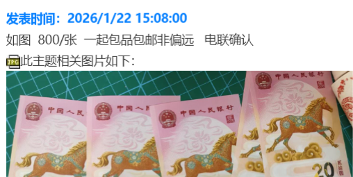 马钞价格今日行情最新,纪念币行情,马钞实时价格,2026马钞今天价格,今日马年生肖纪念钞纪念币行情,搜钱,一尘网今日行情,纪念币价格最新情,最新马钞实时行情查询,马钞行情走势,斗泉 邮宝,爱藏,互动 ,易尘宝 ,一尘盯盘助手