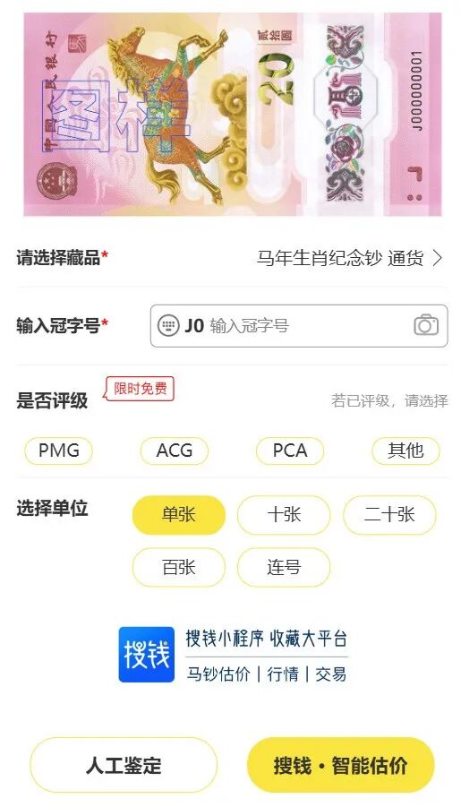 用「搜钱」小程序,输入号码即可快速识别版别类型,并提供行情参考。