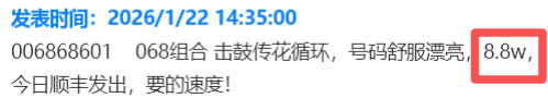 马钞068 组合击鼓传花循环号,刀货8.8 万元有成交。