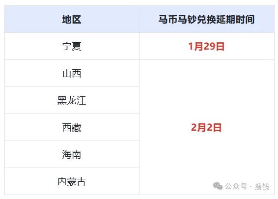 今日为大部分地区常规兑换最后一天;宁夏延长兑换至1月29日,山西、海南、西藏延长至2月2日,兑换延期属纪念币钞发行常规操作。从历史情况来看,延期兑换对整体兑换率影响有限,因前期意向兑换者已完成兑换,未兑换者多因证件问题无法办理。