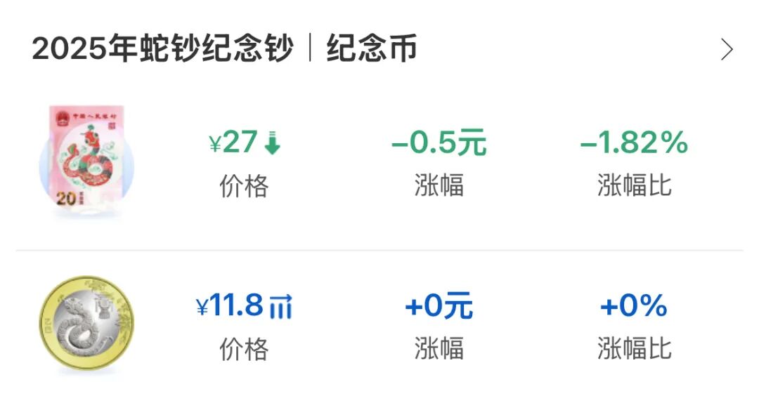 二轮生肖蛇年纪念币稳定在11.8元左右