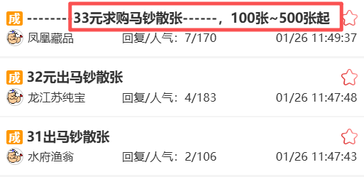 龙钞带4标百稳定在11500元起