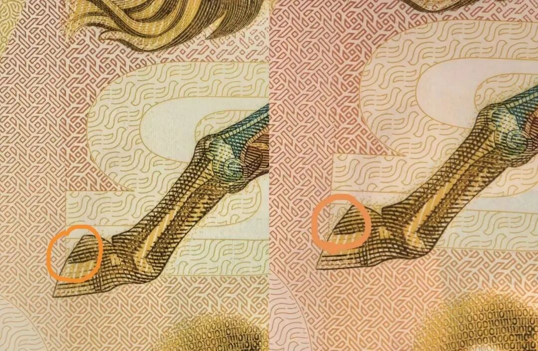 每次新纪念钞发行,藏友们最热衷的就是寻找不同的版别,已经有眼尖的藏友发现了马钞的几个有趣的差异: